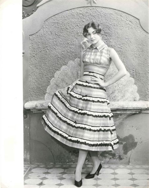 Una stampa fotografica vintage alla gelatina sali d'argento con passepartout per Schuberth con Sylva Koscina come modella