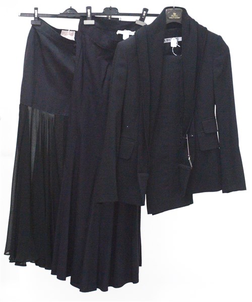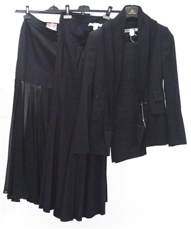 Lotto composto da completo, giacca con pantalone, la giacca sciallata con chiusura a spillone e due gonne lunghe (tg. 40/42) (segni d'uso)