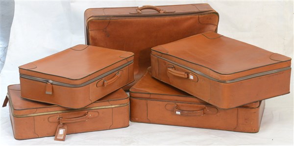 Lotto composto da un set di 5 valigie in cuoio (varie misure) (gravi difetti)