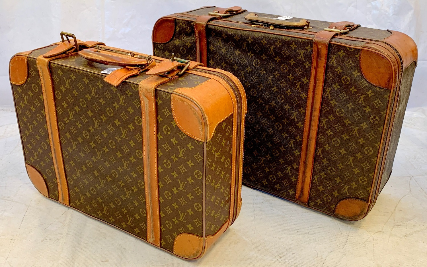 Set di due valige semirigide in tela Monogram con finiture in vacchetta (cm 68x45x21 e 60x40x18 circa) (difetti e segni d'uso)