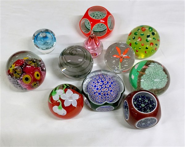 Lotto composto da undici presse-papiers in vetro incolore di diversa fattura, a