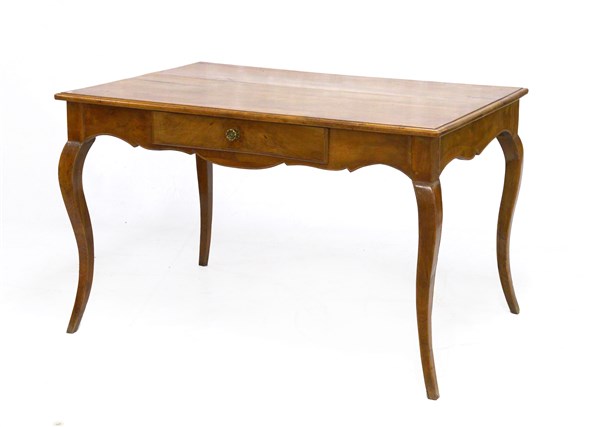 Tavolo ad un cassetto, fascia e gambe sagomate (cm 126x77x80) (difetti e restauri)