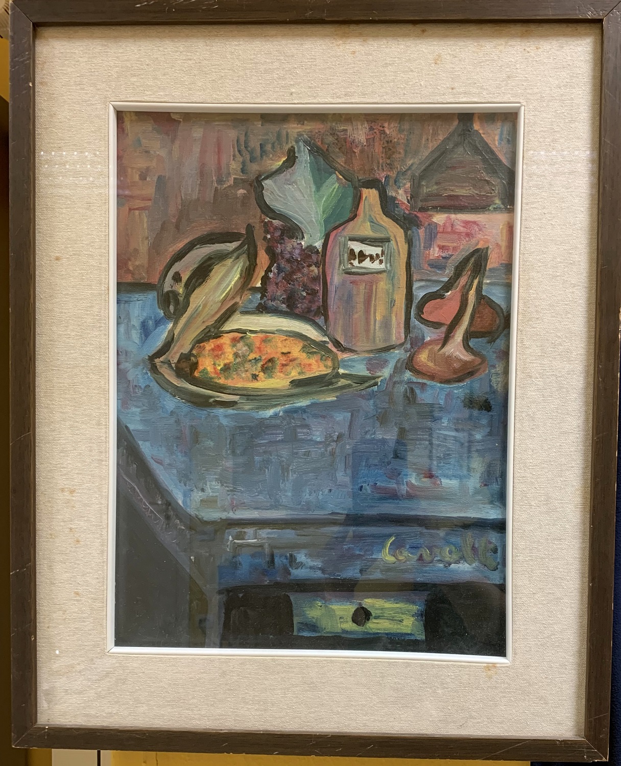 "Natura morta" olio su cartone telato (cm 40x30) Firmato in basso a destra. In cornice