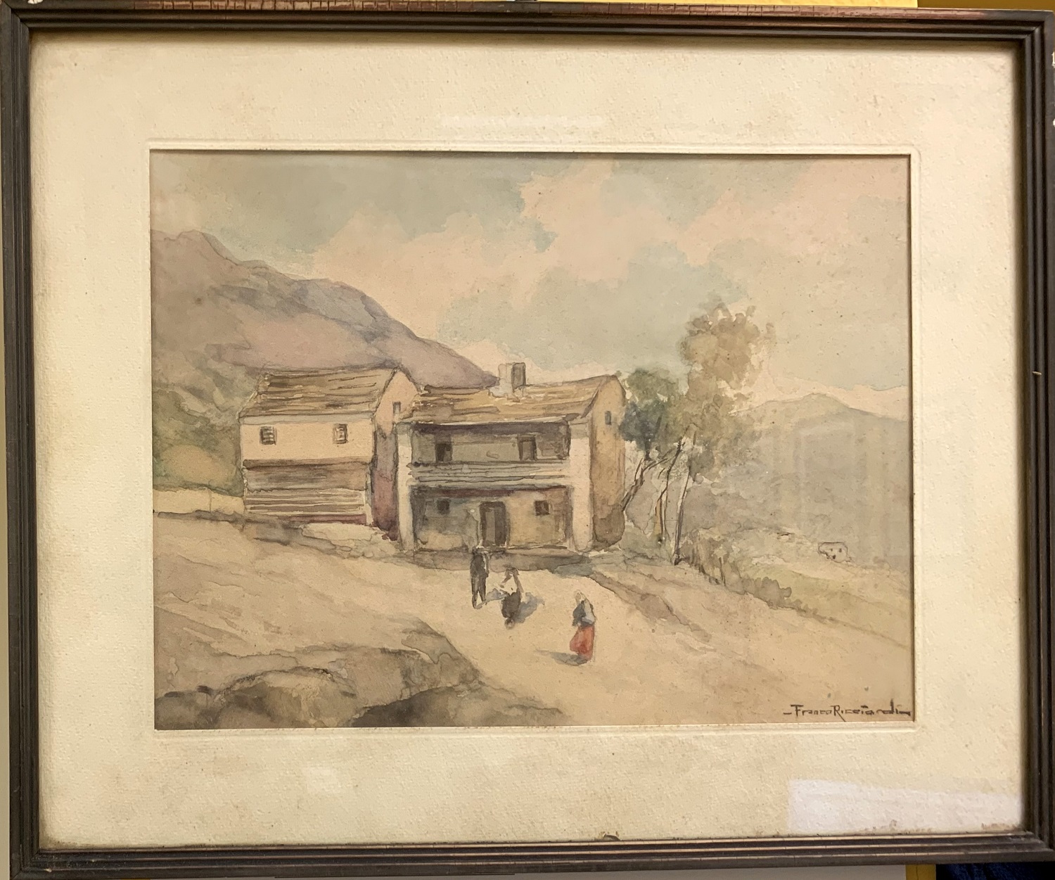 Franco Ricciardi "Paesaggio montano" acquerello su carta (cm 22.5x30) Firmato in