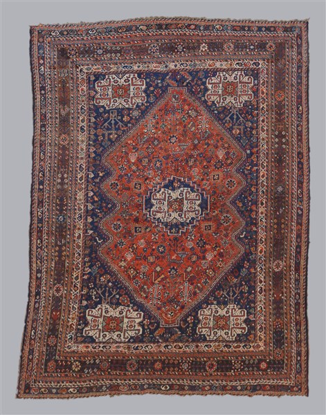 Tappeto Shiraz, Persia, inizio secolo XX. Decoro con medaglione bianco e blu su