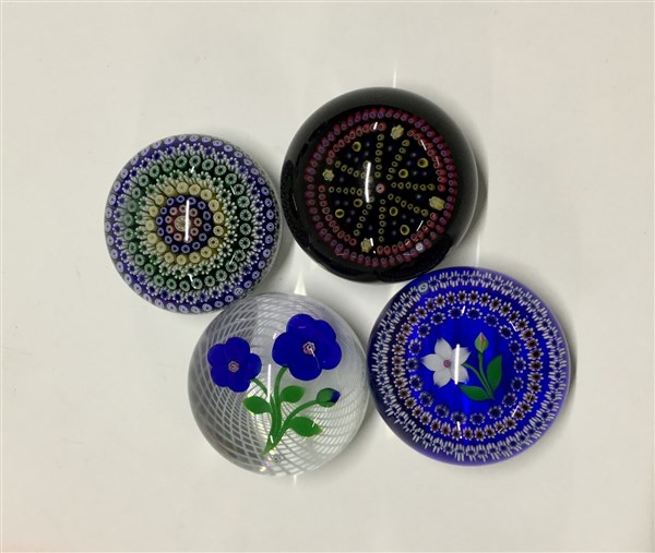 Gruppo di quattro presse-papiers numerati della manifattura di Baccarat (lievi difetti)