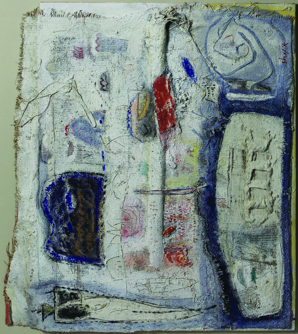 Shafik Medhat Senza titolo tecnica mista su tela cm 65x80 firmato in basso a destra, etichetta Artefiera Bologna 22-26 Gennaio 1998 al retro, autentica dell'artista su foto