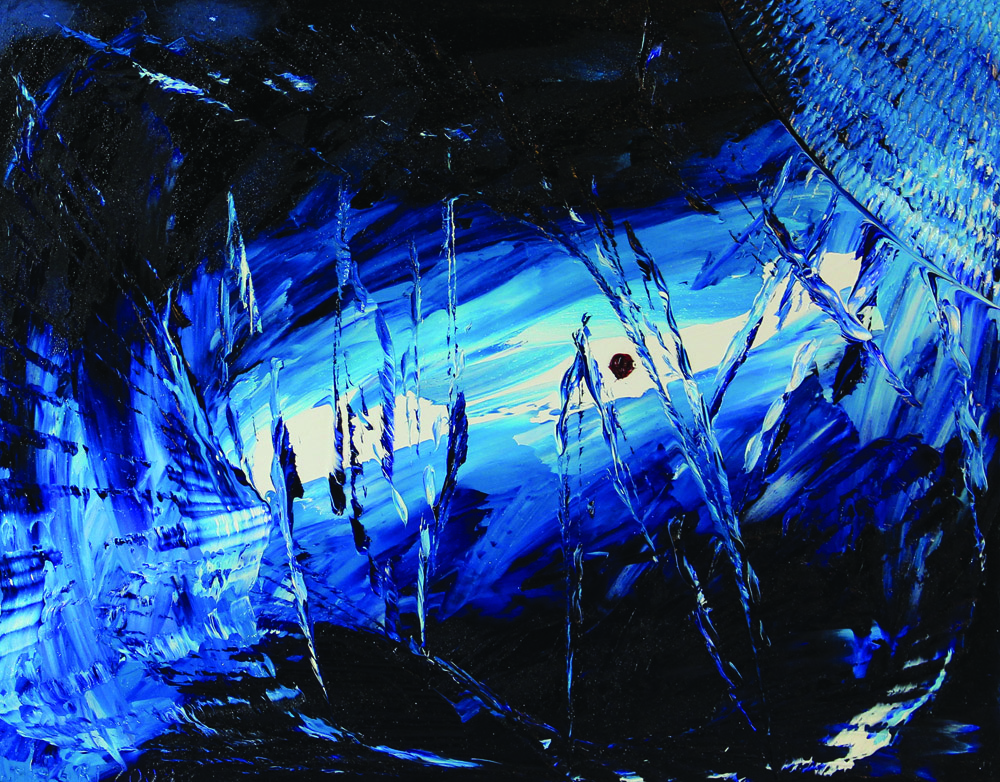 Magri Pier Domenico Solo scudo N. 16, 2008 olio su tela cm 70x100 firmato e datato in basso a sinistra, firmato, intitolato e datato al retro. Etichetta mostra Kosmos il neo spazialismo di Pier Domenico Magri - Palazzo Farnese Piacenza, pubblicato sul