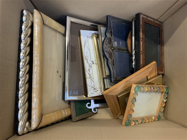 Cartone conetente numerose cornici portafoto di materiali differenti (difetti)