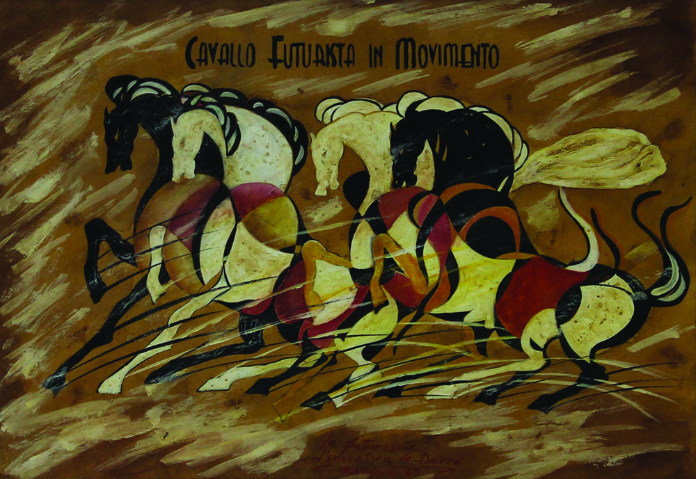 Grazioso David Cavallo futurista in movimento, 1943 Olio su carta cm 22,2x32...