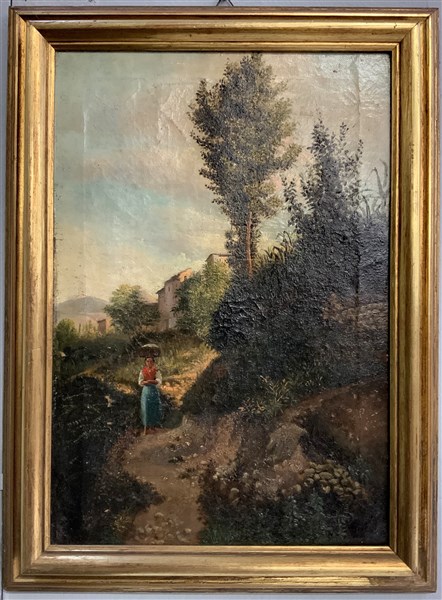 Artista del XIX Secolo "Paesaggio collinare" olio su tela (cm 45x31) In cornice