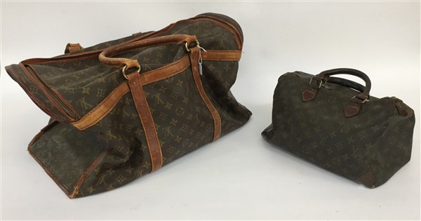 Lotto composto da una sacca ed una borsa con marchio LV (difetti)