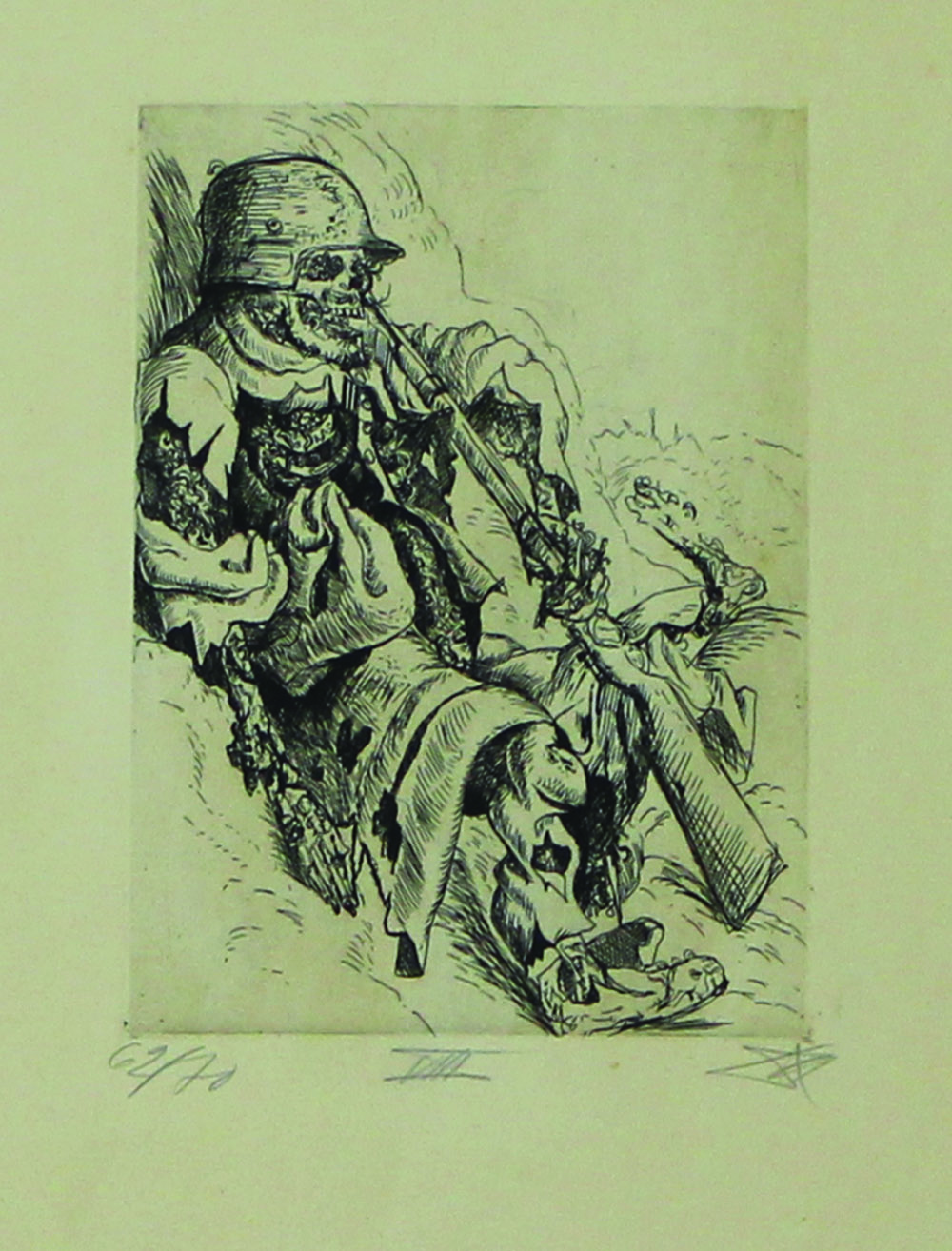Dix Otto Toter sappenposten, 1924 incisione su carta cm 46,5x35 esemplare 62/70, firmata in basso a destra, pubblicata su "Otto Dix das graphische werk" pag. 97