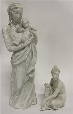 Manifattura Rosenthal, Lotto di due sculture raffiguranti madre con bimba e nu