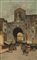 Achenbach Oswald Porta capuana olio su masonite cm 40x25,5 firma in basso a...
