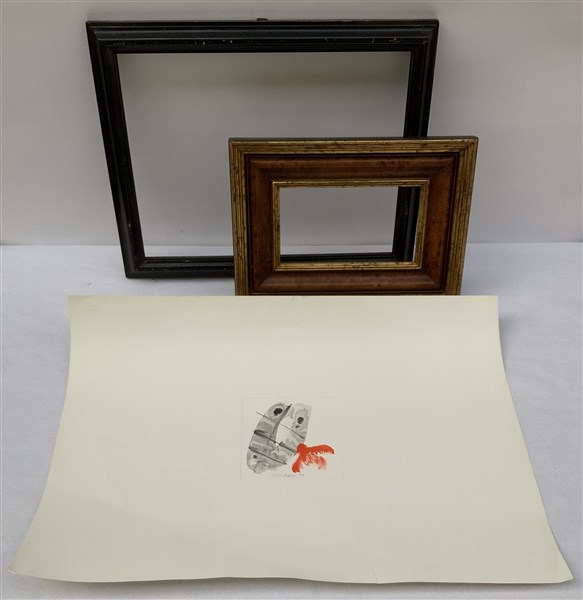 Lotto composto da un disegno a tecnica mista di firma indecifrata datato '93 (foglio cm 50x70) e due cornici di fatture differenti (difetti)