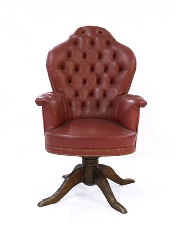 Poltrona da scrivania in pelle capitonnè, gambe con altezza regolabile (difetti
