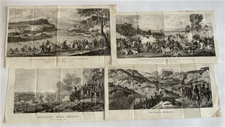 Lotto di quattro incisioni di battaglie napoleoniche, tre inerenti le battaglia d'Italia ed una quella della Moscova. (difetti)