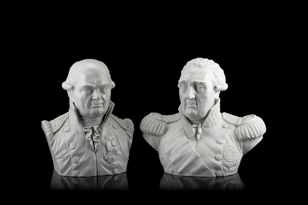 Manufacture of the 20th century. Two white ceramic busts of Generals (h. cm 24)(defects)