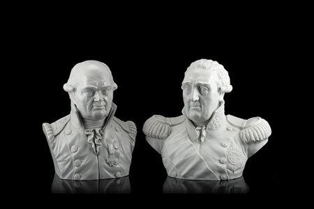 Due busti di generali in ceramica bianca.Manifattura del secolo XX (h. cm 24)