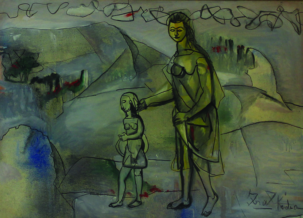 Kodra Ibrahim Personaggi, 1951-52 olio su tela cm 50x70 firmato in basso a destra, firmato e datato al retro, autentica dell'artista su foto del 21 giugno '90