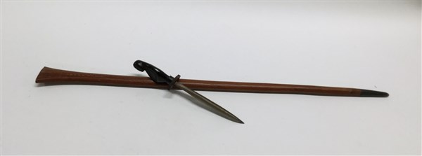 Bastone a forma di fodero con impugnatura in ebano con figura antromorfa celante un pugnale.