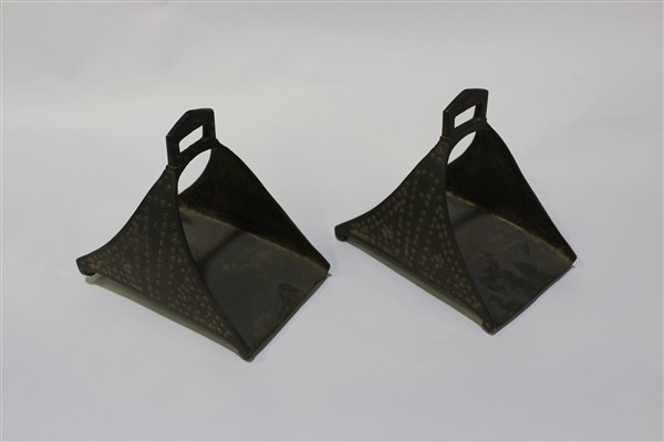 Coppia di staffe moresche in ferro forgiato arricchite da chiodature. Mondo ara