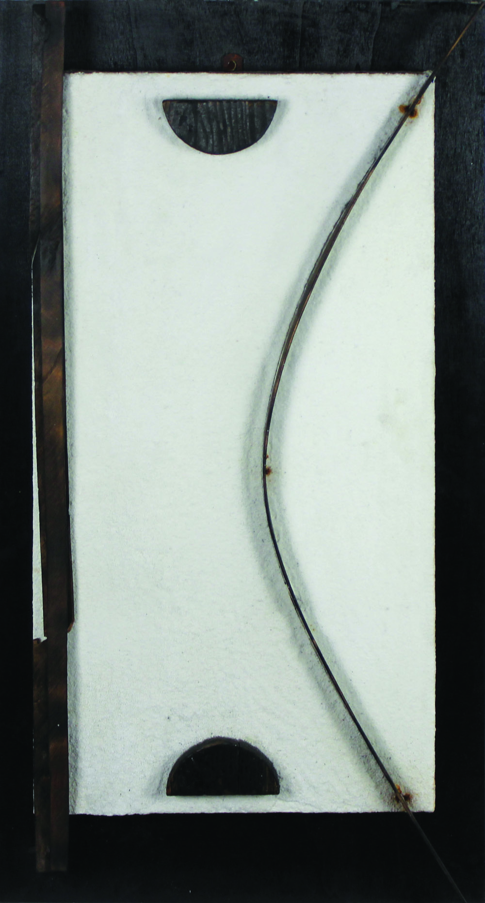Calzolari Pier Paolo Senza titolo, 1979 sale, legni bruciati e piombo cm 100x50 autentica su foto rif. M854, Certificato di Autenticità Gallerie d' Arte Orler