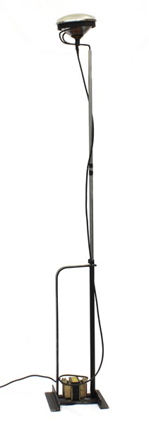 Lampada da terra in metallo verniciato nero, fusto in metallo cromato. (altezza regolabile) (difetti)