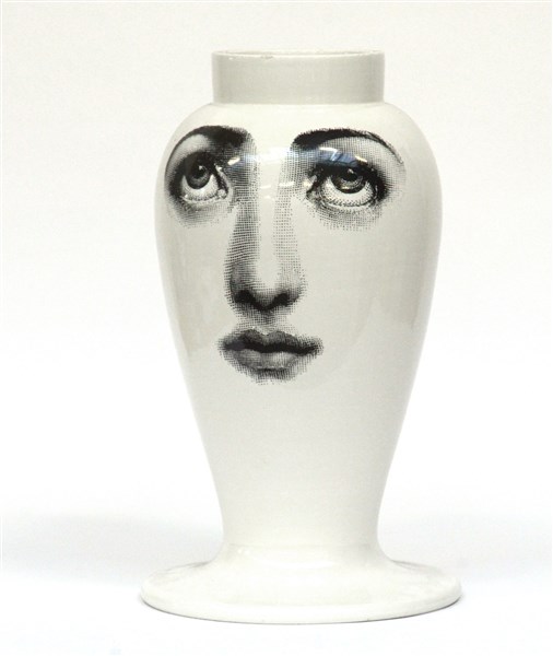 Base del tavolino modello "Architettonico". Produzione Bitossi, Montelupo, 2015. Ceramica serigrafata in nero. Marcata sotto la base. (h cm 48) (difetti)