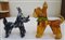 Manifattura di Murano Coppia di cani in vetro massello ambra e in pasta vitrea