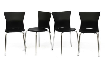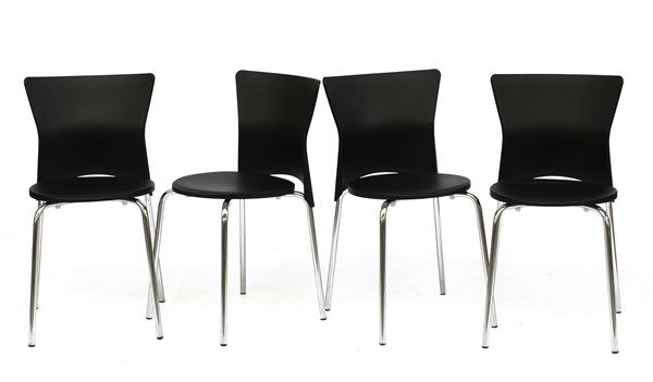 Lotto composto da quattro sedie modello "Isis". Produzione Sintesi, Italia, produzione recente. Acciaio e polipropilene nero. (cm 41x78x46)