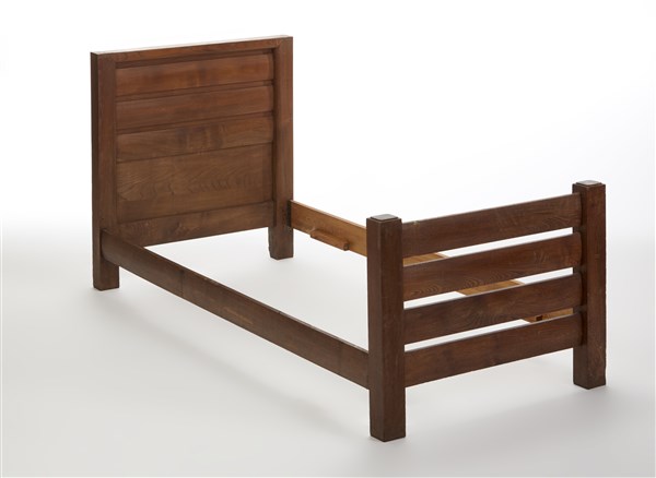 Letto singolo accoppiabile a formare un letto matrimoniale in legno massello di rovere. Italia, 1935ca. (cm 96x102,5x212) (difetti e restauri)