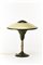 Lampada da tavolo con struttura in fusione e in lastra di ottone, paralume in v