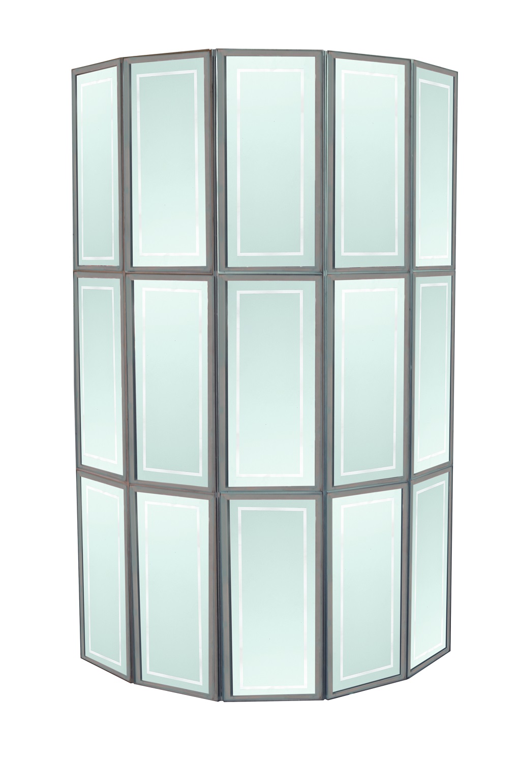 Paravento con struttura in metallo e lamine in cristallo molato. Italia, anni duemila. (difetti)