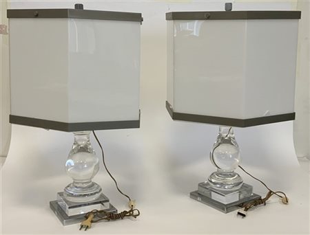 Coppia di lampade da tavolo con paralume e struttura in plexiglass e metallo cromato. Italia, anni '70. (h cm 67) (lievi difetti)