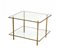 Tavolino da salotto a due ripiani con struttura in ottone e ripiani in cristall