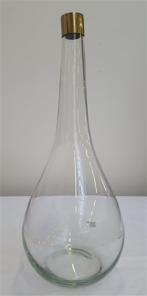 Vaso montato a lampada in vetro soffiato trasparente incolore. Anni '70. (cm 60x50x60) (mancanze)