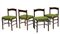 Gruppo di quattro sedie in legno massello e compensato con schienale a giorno e gambe tornite, cuscino imbottito in tessuto verde. Italia, anni '60. (cm 51x77x55) (difetti)