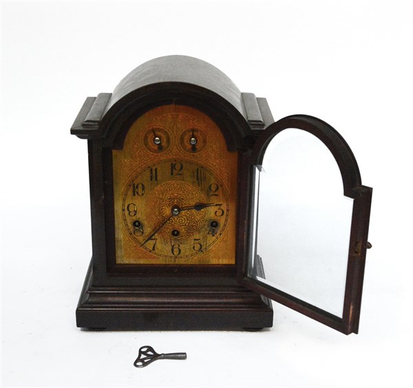 Orologio da tavolo con cassa in legno dell'inizio secolo XX. Movimento del ti