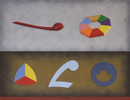 Del Pezzo Lucio Oggetti, 2008 Collage, colore acrilico e smalto su legno cm 60x75 firmato in basso al centro, firmato datato e intitolato al retro, certificato Archivio Lucio Del Pezzo
