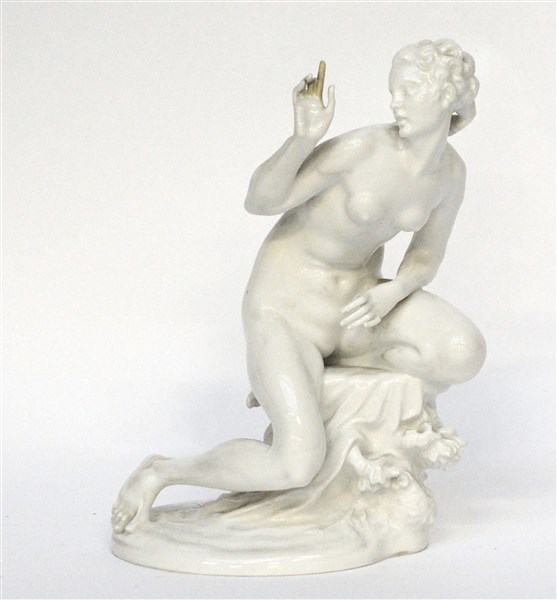 Manifattura di Berlino, secolo XX. Scultura in porcellana raffigurante nudo femminile (h. cm 31) (restauri)