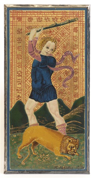 M. Frosali "Ercole" placca in argento smaltato (cm 30x15,5) Firmato e numerato