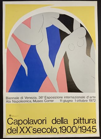 Lotto composto da tre manifesti espositivi della Biennale di Venezia: "Aspetti della grafica europea" Museo d'Arte Cà Pesaro, settembre - ottobre 1971; "Capolavori della pittura del XX Secolo, 1900/1945" Ala Napoleonica, Museo Correr, giugno - ottobre 1972; "Biennale di Venezia, Esposizione Internazionale d'Arte" giugno - ottobre 1972, questi ultimi due manifesti con realizzazione grafica di Abe Steiner