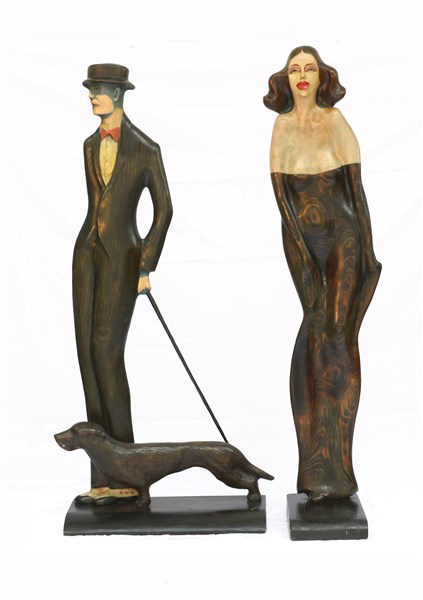 Rod Dudley coppia di silhouette in legno laccato raffiguranti gentiluomo e genti