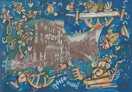 Martino Delego "Milano, vecchi ricordi" 2009 tecnica mista e collage su masonite