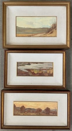 Gino Bellani lotto di tre piccoli olii raffiguranti paesaggi In cornici (lievi d