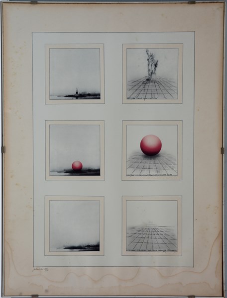 "New York - Statua della Libertà/ Sostituzione con sfera biodegradabile rossa" 1975