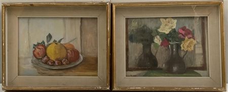 Ignoto Coppia di dipinti ad olio su tela raffiguranti nature morte con fiori e f