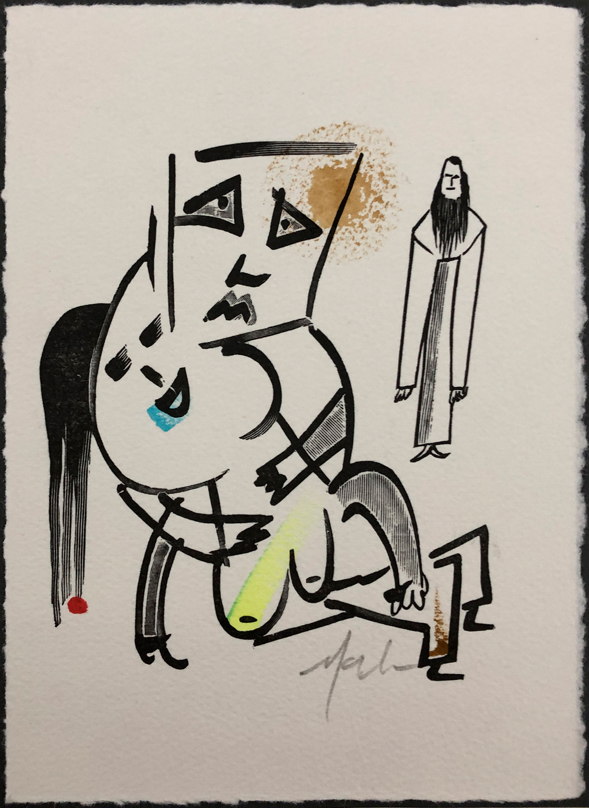 Piccolo libro d'arte contenente una xilografia ritoccata a mano di Sergio Dangelo recante firma dell'Artista a matita al fronte